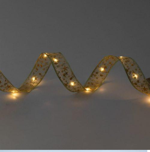 Rendkívül látványos beltéri dekoráció, 8 különböző fényeffekttel. Arany színű, ritka szövésű (ezért kissé átlátszó) mintás szövetbe bebújtatott 100 db meleg fehér LED.
